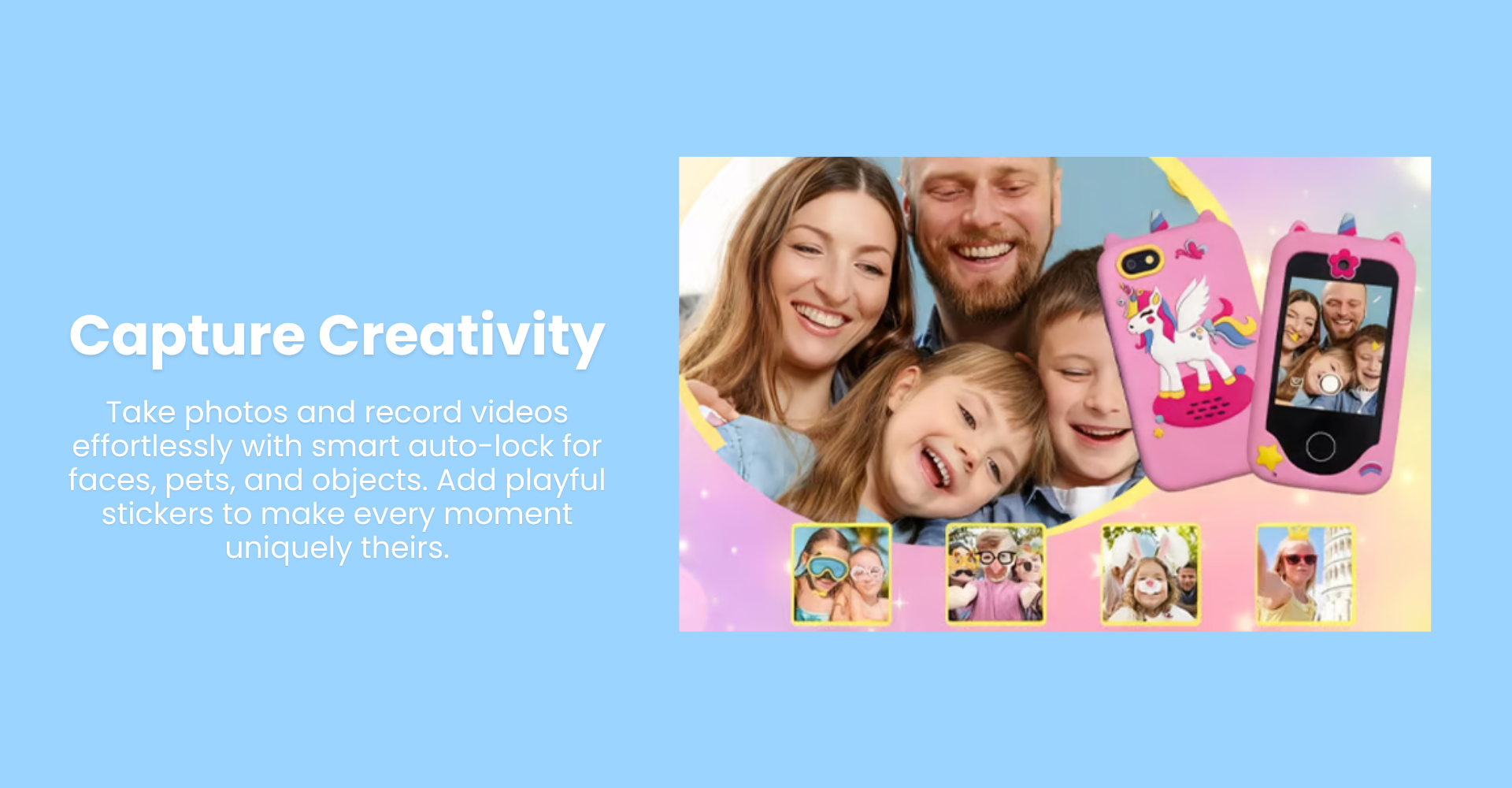 The MiniMe Smartphone keeps kids engaged with interactive games, stories, music, drawing tools, and a real camera — turning playtime into a world of discovery and imagination.